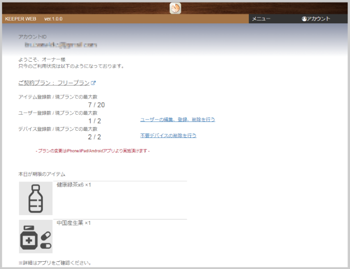 各カテゴリのアイテム状態の確認がブラウザ上からも行える上、